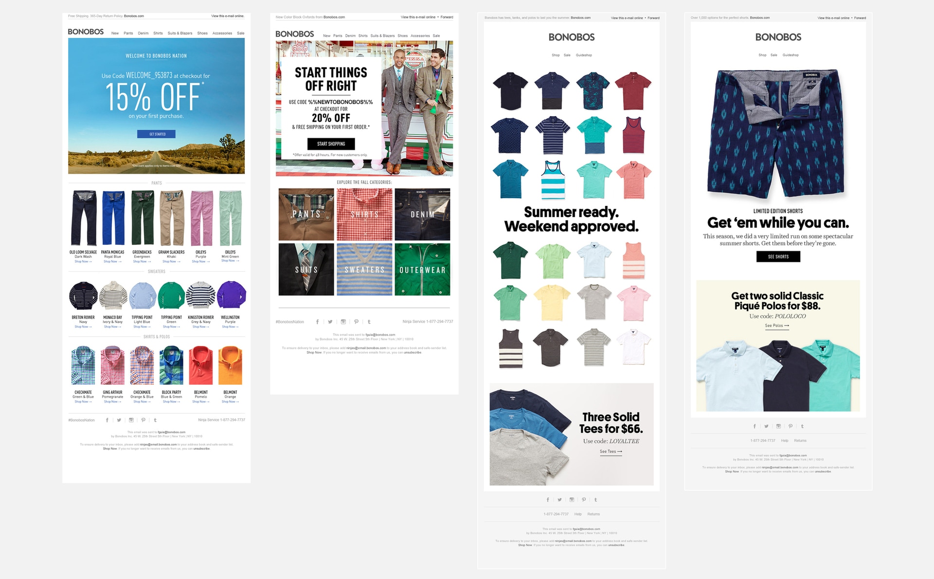 These are various Bonobos evites to guideshop events and examples of daily digital marketing emails.