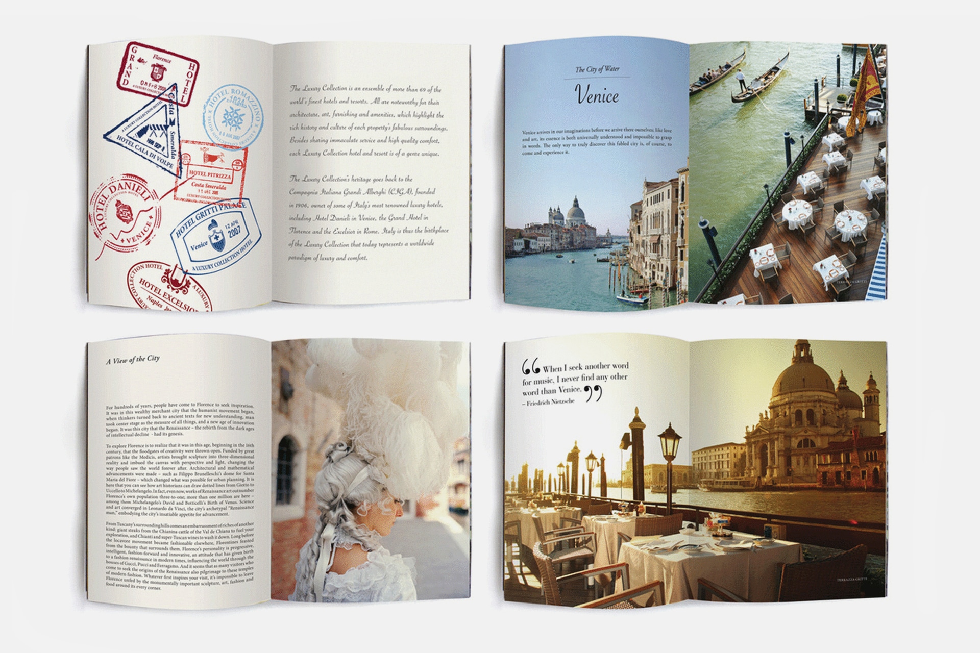 For this project, I partnered with the Art Director on designing a kit to house six travel guides highlighting hotels and resorts in the US, Spain, India, Italy, Argentina, and Greece. I supported with layout design for the interior of the guides and the kit’s cover design.
